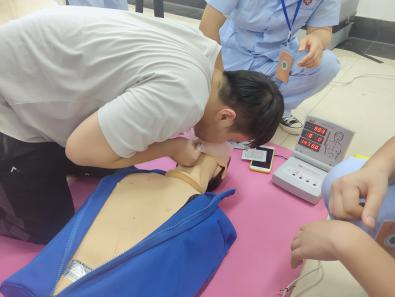 培训导师介绍了CPR(心肺复苏)急救技术、创伤救护(止血、包扎、骨折固定)、气道异物梗阻(海姆立克)的急救技术等知识。并针对心肺复苏的具体步骤,从环境评估到意识判断、识别并呼救再到开放气道、胸外心脏按压等环节进行了详细的讲解与示范。